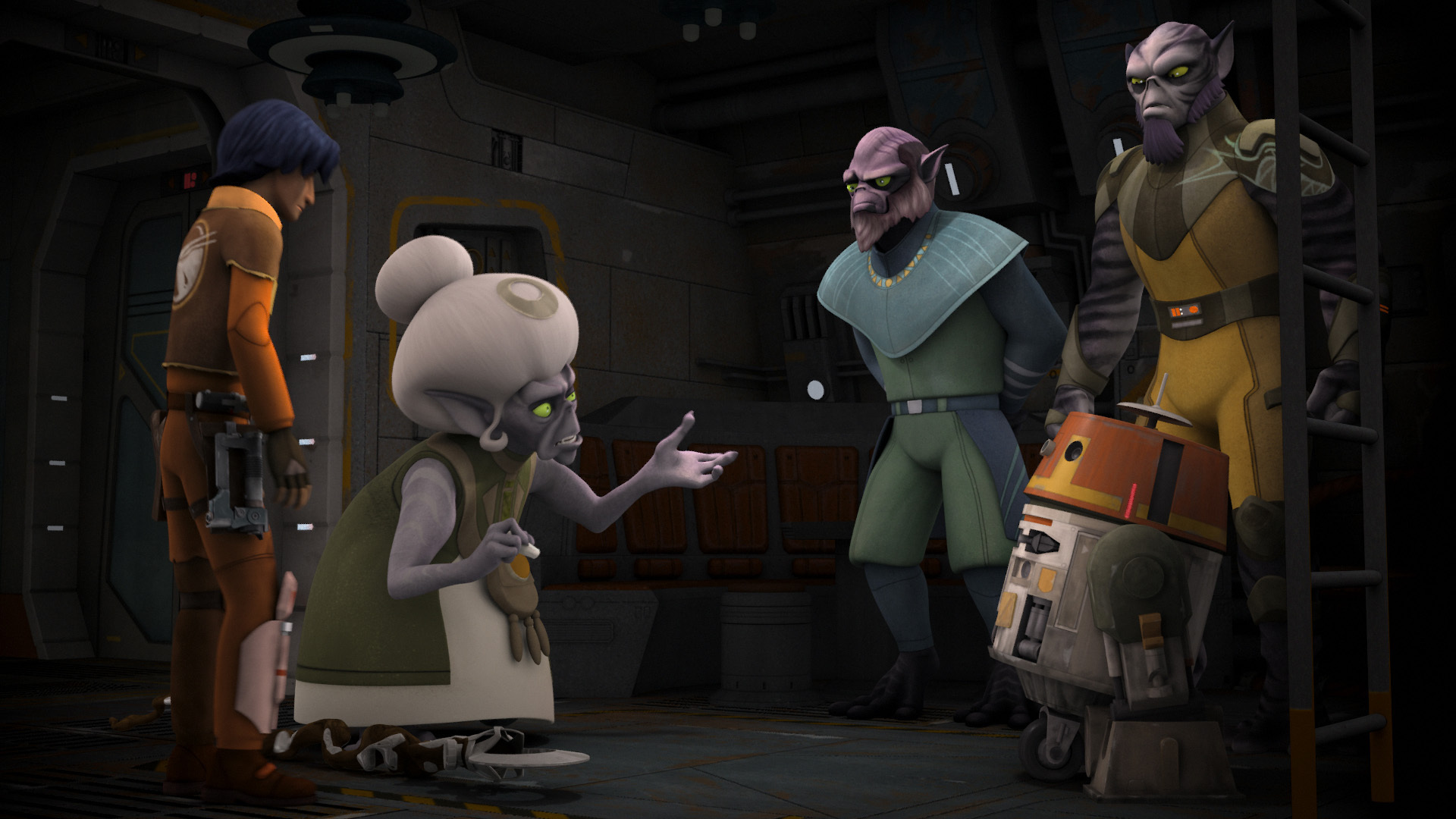 In “Legends of the Lasat,” we learn that Zeb was a captain in the Lasan Honor Guard. “People have recognized that Zeb seems to be the most militaristic of the bunch,” says the Story Group’s Pablo Hidalgo. “So now we get to see where that comes from. Zeb meets fellow survivors, Gron and Chava — a significant development for the Ghost crew’s bruiser.